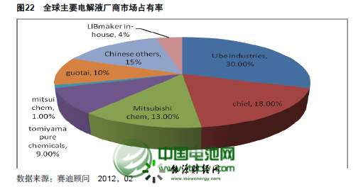 目前,全球鋰離子電池電解液的供應(yīng)商主要集中在中日韓三國。日本電解液的主要供應(yīng)商是宇部興產(chǎn)(基本供給日本三洋)、三菱化學(xué)、富山藥品工業(yè)等,主要供給日本本土以及部分在華日資企業(yè);韓國電解液的主要供應(yīng)商是韓國三星,主要供應(yīng)韓國本土企業(yè)和部分在華韓資企業(yè)。