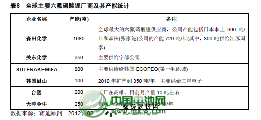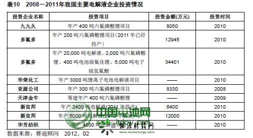 作為全球鋰電池電解液最大的供應(yīng)國,中國所需的六氟磷酸鋰電解質(zhì)基本都從日本采購,關(guān)鍵原材料的受制于人嚴(yán)重阻礙了中國整個電解液產(chǎn)業(yè)的發(fā)展。近期,國內(nèi)企業(yè)已經(jīng)充分認(rèn)識到這點,紛紛加大對六氟磷酸鋰的研發(fā)和投資力度。九九久、多氟多、江蘇國泰等企業(yè)紛紛投資新建六氟磷酸鋰項目,賽迪顧問認(rèn)為隨著國內(nèi)企業(yè)在六氟磷酸鋰項目上的中試成功并產(chǎn)業(yè)化發(fā)展,中國電解液的發(fā)展將迎來一個新的里程碑。