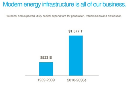 接著,Jurich談到了將來會不斷膨脹的電力基礎設施的總投資成本。美國研究機構The Brattle Group的數(shù)據(jù)表明,1989~2009年的20年間,對電力基礎設施(發(fā)電、輸配電網(wǎng))的投資是5230億美元。在之后的20年間(2010~2030年),設想這個數(shù)字會膨脹到約3倍的1.5萬億美元(圖2)。