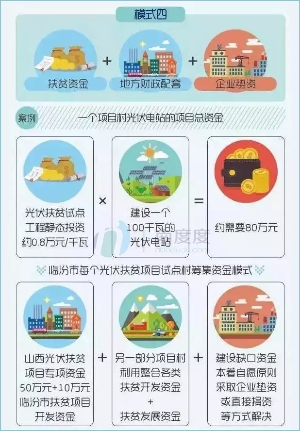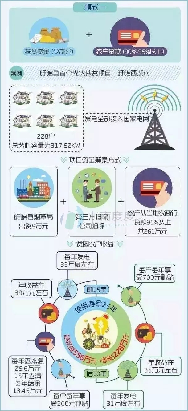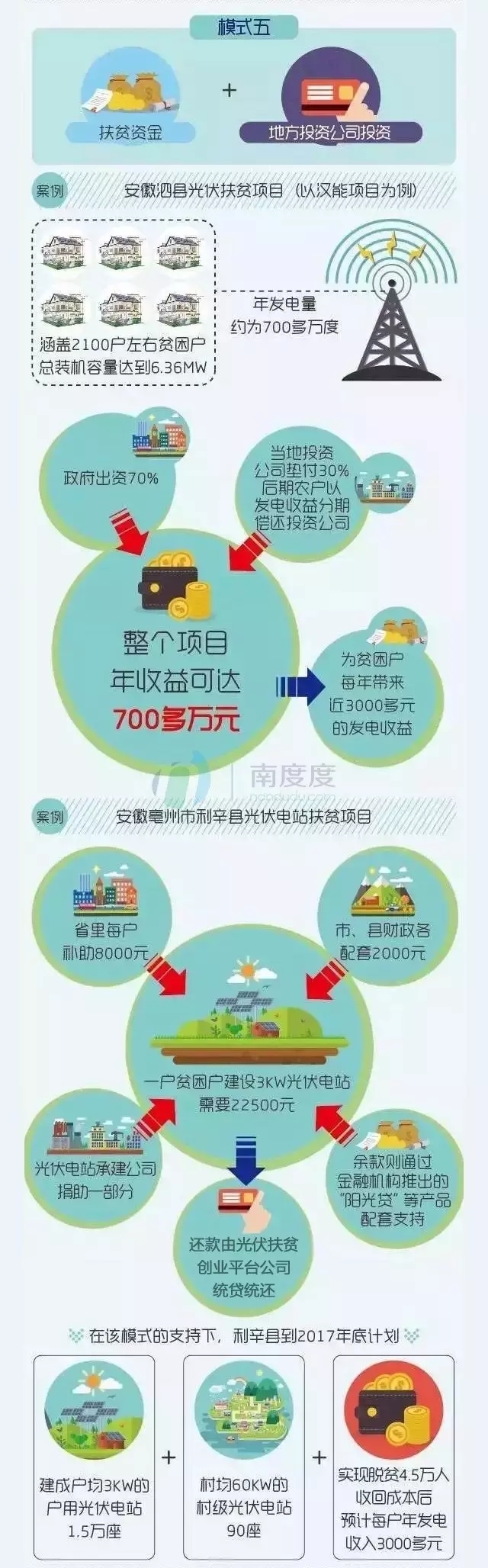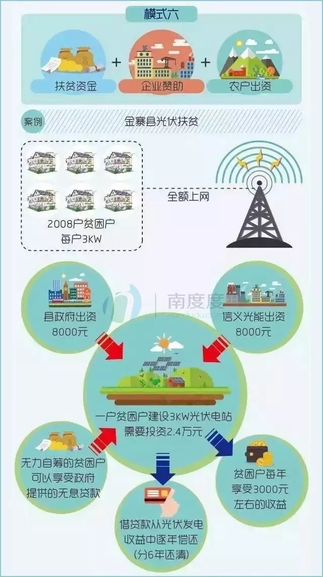 光伏扶貧中最大的問題是初始建設(shè)投入都較大,好的扶貧模式可以有效解決貧困戶的初始投入,后期貧困戶可以利用光伏電站收益獲得穩(wěn)定收入。結(jié)合不同地區(qū)、不同條件,許多扶貧模式大同小異,這里歸納了幾種較為成功的扶貧模式和相關(guān)案例: