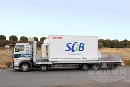 集裝箱形大型充放電試驗設(shè)備的特點在于將各種設(shè)備收納于集裝箱中。集裝箱長為5.5米,寬為2.25米,高為2.8米,可裝在卡車上輕松移動。配備有安全性較高、可循環(huán)使用6000次以上的東芝鋰離子電池“SCiB”。由系統(tǒng)集裝箱及用于擴展的電池集裝箱構(gòu)成,容量為240千瓦時,還可進一步增強。