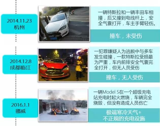 2016年8月16日,特斯拉ModelS90D車輛在法國(guó)西南部城市比亞里茨(Biarritz)路試時(shí)發(fā)生起火,車輛盡毀,所幸并無人員傷亡,并且在事故前,車輛就發(fā)出了警報(bào),足見Tesla在電動(dòng)汽車安全方面的工作做得還是非常到位。盡管如此,自上市以來Tesla還是經(jīng)歷了種種“取經(jīng)磨難”,這里先為大家梳理出Tesla的主要安全事故: