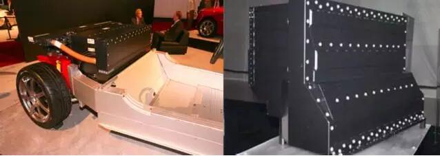 圖1 Tesla Roadster的電池包在車輛內(nèi)安裝位置(左)和實(shí)物圖(右)