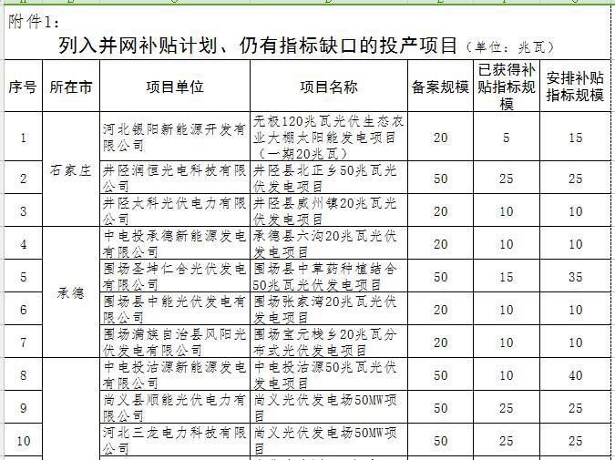 附件:1.列入并網(wǎng)補(bǔ)貼計(jì)劃、仍有指標(biāo)缺口的投產(chǎn)項(xiàng)目