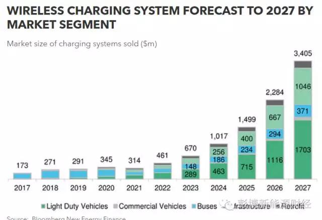 現(xiàn)階段,無(wú)線電動(dòng)汽車(chē)充電(WEVC)市場(chǎng)的規(guī)模仍非常有限,主要來(lái)自消費(fèi)者購(gòu)車(chē)后的次級(jí)市場(chǎng)消費(fèi)和少量電動(dòng)大巴購(gòu)買(mǎi)合同。為了推動(dòng)這項(xiàng)技術(shù)的普及,至少要有一家大型汽車(chē)廠商挺身而出, 100%帶頭支持無(wú)線充電技術(shù)。彭博社預(yù)計(jì)這種情況將出現(xiàn)在2023年左右,主要源于不同電動(dòng)車(chē)和發(fā)動(dòng)機(jī)型號(hào)之間的成本平價(jià),以及各家汽車(chē)廠商之間的競(jìng)爭(zhēng)。
