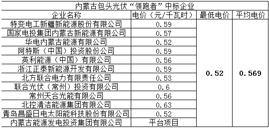 表七內(nèi)蒙古包頭光伏領(lǐng)跑者中標(biāo)企業(yè)及電價