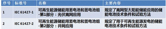 制訂該標準的目的是為了指導最終用戶能夠判斷并選擇合適的儲能電池類型、合理地操作以及在壽命結(jié)束時進行回收處理。通過針對一些特定的應用場合,用一套統(tǒng)一的測試方法來測試不同電化學體系儲能電池的優(yōu)劣,最終為用戶如何選擇儲能電池提供幫助。