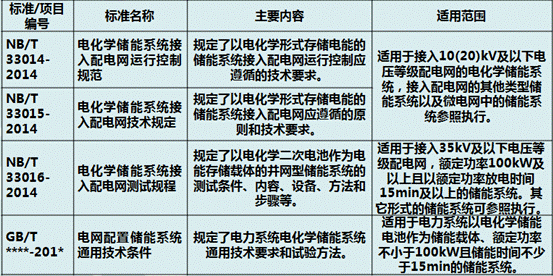 現(xiàn)狀:我國化學儲能的標準國家標準、工程建設國家標準、行業(yè)標準大部分處于正在制定狀態(tài),團體標準處于起步階段,企業(yè)標準基本已經(jīng)完備?;瘜W儲能的相關標準涉規(guī)劃設計類、設備及試驗類、施工及驗收類、并網(wǎng)及檢測類、運行與維護類等5個方面,對于我國化學儲能的發(fā)展起到了很好的指導和規(guī)范作用,確保了我國化學儲能全面的發(fā)展建設。目前正在制定的儲能國家標準10項,發(fā)布和制定的工程建設國家標準2項、行業(yè)標準9項、團體標準5項、企業(yè)標準10項。