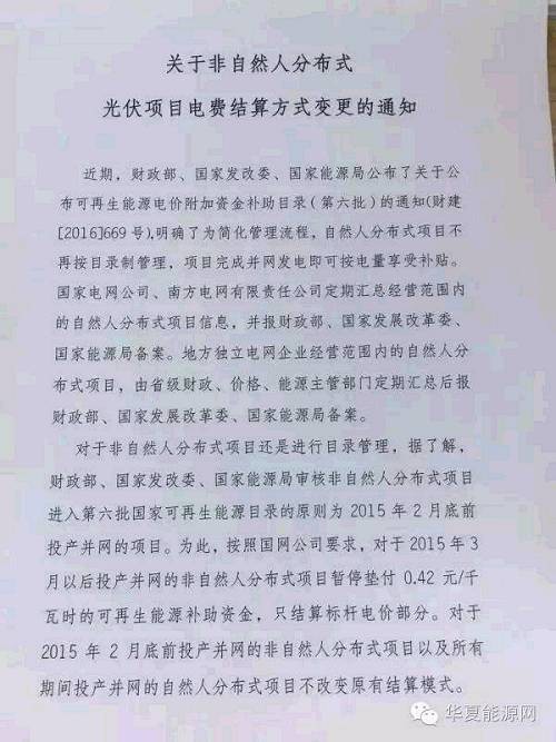 此前,財(cái)政部、國(guó)家發(fā)改委、國(guó)家能源局審核非自然人分布式項(xiàng)目,進(jìn)入第六批國(guó)家可再生能源目錄的原則為2015年2月底前投產(chǎn)并網(wǎng)的項(xiàng)目。國(guó)家電網(wǎng)以此來(lái)劃定時(shí)間線,很明顯是不愿意再為拖欠的光伏補(bǔ)貼來(lái)墊錢(qián)。這對(duì)于當(dāng)前的分布式開(kāi)發(fā),并不是一個(gè)好消息。