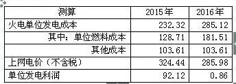 以陜西火電平均發(fā)電標煤耗315克/千瓦時,榆林5500大卡動力煤價格進行測算,原煤價格每上漲25元,影響發(fā)電燃料成本增加1分錢。今年以來,煤炭價格增長131.5元/噸,影響發(fā)電燃料成本增加5.28分/千瓦時。以燃煤標桿電價和2015年陜西火電相關(guān)成本數(shù)據(jù)進行測算,目前單位燃料成本預計已達181.51元/千千瓦時,單位發(fā)電成本285.12元/千千瓦時,發(fā)電利潤僅為0.86元/千千瓦時,基本屬于盈虧平衡。若煤價進一步上漲,發(fā)電企業(yè)將出現(xiàn)虧損。