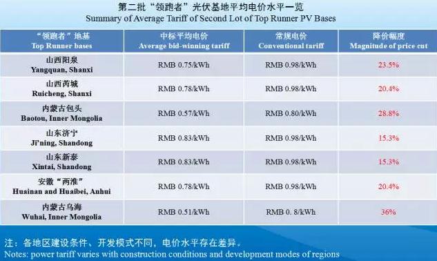 第四,逐步推動電價下降。通過產(chǎn)業(yè)技術(shù)提升、成本下降及投資環(huán)境改善,逐步推動“領(lǐng)跑者”項目電價下降。