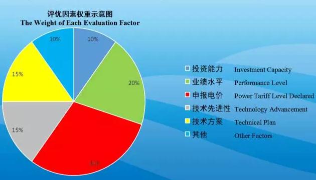 另外,領(lǐng)跑者項目評優(yōu)要求參考多項因素,各基地通過競爭性比選的方式,考慮企業(yè)投資能力、業(yè)績水平、技術(shù)先進性、技術(shù)方案、企業(yè)申報電價等因素進行優(yōu)選,最終選出綜合實力較優(yōu)的投資企業(yè)。申報電價在其中占30%的權(quán)重(由于各地區(qū)項目建設(shè)條件存在差異,實際工作中略有微調(diào))。投標電價并不是領(lǐng)跑者項目唯一參看的評優(yōu)因素。技術(shù)先進性、技術(shù)方案合計同樣占評優(yōu)因素權(quán)重的30%。其余還考慮到投資企業(yè)業(yè)績水平、投融資能力等多種因素。