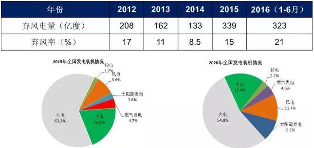 快速增加的可再生能源裝機(jī)量為我國(guó)電力行業(yè)的發(fā)展帶來(lái)了一近一遠(yuǎn)兩個(gè)問(wèn)題,即現(xiàn)階段的高比例棄風(fēng)棄光問(wèn)題和未來(lái)電網(wǎng)對(duì)大比例可再生能源并網(wǎng)消納的調(diào)節(jié)問(wèn)題。2015年,雖然我國(guó)的風(fēng)電和光伏發(fā)電總量占總發(fā)電量的比例只有4%左右,但多個(gè)地區(qū)已面臨非常嚴(yán)峻的可再生能源發(fā)電消納問(wèn)題,棄風(fēng)、棄光問(wèn)題突出,造成了巨大的損失和負(fù)面影響;據(jù)統(tǒng)計(jì)截止到2016年前六個(gè)月,我國(guó)棄風(fēng)率達(dá)到21%;局部地區(qū)棄風(fēng)棄光更加嚴(yán)重,以甘肅為例,2015年,棄風(fēng)率39%,棄光率31%。