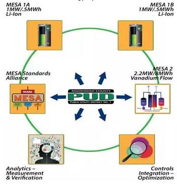 Snohomish County Public Utility District (PUD) 是華盛頓州第二大公用事業(yè)公司(publicly owned utility ),服務于33.7萬電力客戶。PUD已經(jīng)獲得華盛頓州清潔能源基金730萬美元的支持,在當?shù)亻_展儲能示范和技術驗證項目。此外PUD借助該儲能項目還將與Bonneville Power Administration 和華盛頓大學聯(lián)合開展儲能應用優(yōu)化和需求響應的示范驗證,該部分也將得到華盛頓清潔能源基金100萬美元的支持。PUD將與1Energy Systems合作搭建儲能系統(tǒng)平臺(Modular Energy Storage Architecture),并于2016年9月開發(fā)完成儲能優(yōu)化控制系統(tǒng)(Energy Storage Optimizer)。