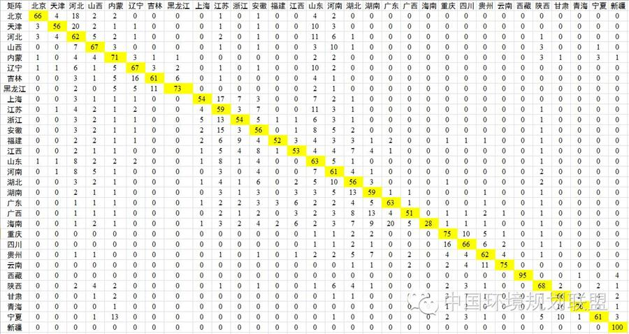 圖 1:2015 年度全國(guó) PM2.5 跨省輸送矩陣