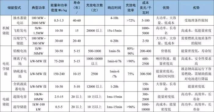 下面對不同形式的儲能的性能作了如下分析總結(jié):