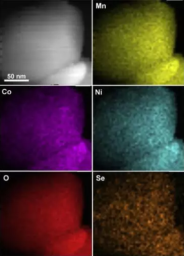 實(shí)驗(yàn)中Quanxin Ma首先利用共沉淀法合成了Mn、Co、Ni和Se元素的氫氧化物前驅(qū)體,然后在120℃下真空干燥24h,然后與LiOH?H2O進(jìn)行混合和球磨,然后在850℃下焙燒20h合成了具有不同的Se摻雜量的Li1.2[Mn0.7Ni0.2Co0.1]0.8_xSexO2材料。