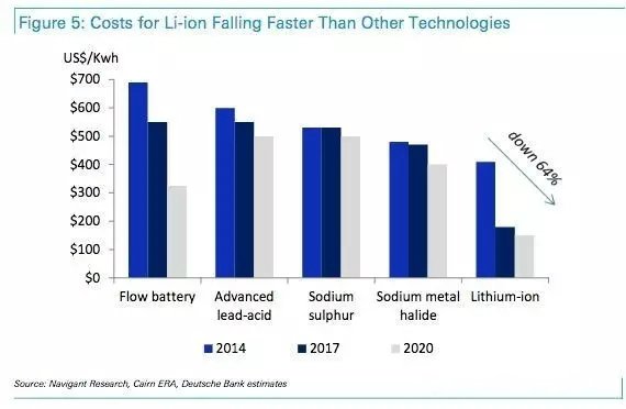 德意志銀行的報告專門提到了特朗普就任美國總統(tǒng)的影響。報告認為,特朗普上臺后美國對可再生能源的補貼政策和研發(fā)經(jīng)費將會縮水,但是對于儲能市場本身卻可能是歪打正著的推動,因為減少了補貼的間歇性可再生能源的繼續(xù)發(fā)展將更依賴于儲能技術(shù)。