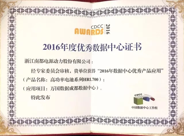 會(huì)上,南都電源HRL系列高功率電池再度榮獲2016年度優(yōu)秀數(shù)據(jù)中心產(chǎn)品應(yīng)用獎(jiǎng),成為電池行業(yè)唯一一家連續(xù)四年榮獲“中國(guó)優(yōu)秀數(shù)據(jù)中心產(chǎn)品應(yīng)用獎(jiǎng)”的企業(yè),再次證實(shí)了南都電源在數(shù)據(jù)中心領(lǐng)域的強(qiáng)大實(shí)力,極大地提高了公司的行業(yè)地位和品牌形象。