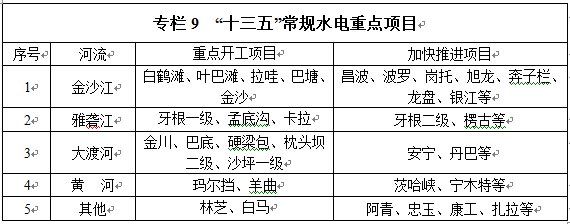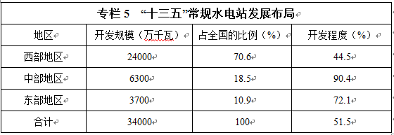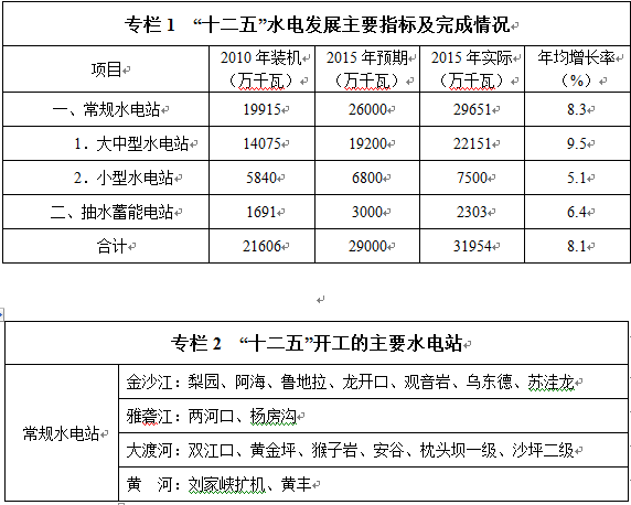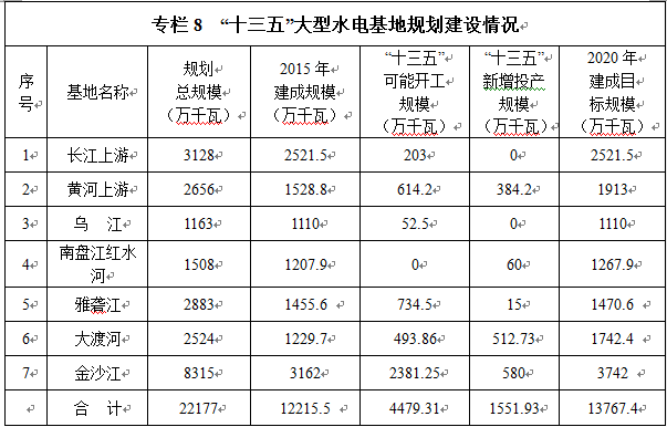 水電發(fā)展“十三五”規(guī)劃(2016 - 2020年)