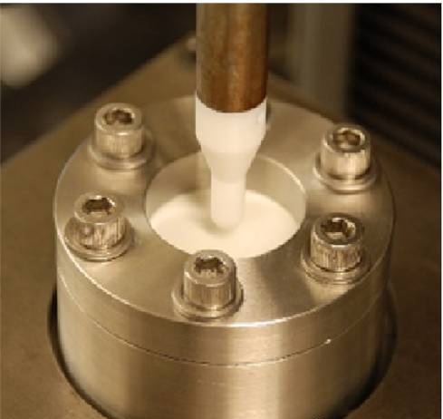 為了測試隔膜的厚度壓縮性能,Xiaowei Zhang將隔膜卷繞成具有40層的圓柱形結(jié)構(gòu),直徑為16mm,首先給卷芯采用0.5MPa進(jìn)行加壓,確保隔膜層間沒有間隙,然后逐漸增加壓力直到100MPa。經(jīng)過上述加壓實(shí)驗(yàn)后,干法工藝制備的PE和三層復(fù)合隔膜在軸向上變形成橢圓,但是濕法陶瓷涂層隔膜和無紡布工藝隔膜則仍然在測試后保持了圓形結(jié)構(gòu),這主要是由于干法隔膜各向異性較大,而濕法隔膜和無紡布隔膜各個(gè)方向上抗拉強(qiáng)度近似造成的。對隔膜卷芯的應(yīng)變測試也發(fā)現(xiàn),在壓力加載的過程中干法工藝制備的PE和三層復(fù)合隔膜在20MPa左右存在一個(gè)明顯的屈服點(diǎn),而且應(yīng)變也大于濕法工藝隔膜和無紡布工藝隔膜,后者在測試中未出現(xiàn)明顯的屈服點(diǎn)。