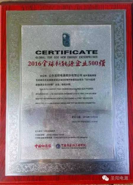 中國儲能網(wǎng)訊:臨近歲末,山東圣陽電源股份有限公司(簡稱圣陽電源)捷報頻傳,11月29日 “2016中國能源集團500強”強勢發(fā)布,12月6日“全球新能源企業(yè)500強”新鮮出爐,圣陽電源憑借多年來在能源領(lǐng)域的突出貢獻(xiàn)和優(yōu)異成績雙榜題名。