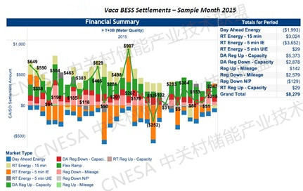 圖1:2015年8月Vaca儲能項目參與CAISO電力市場收益結(jié)構(gòu)圖