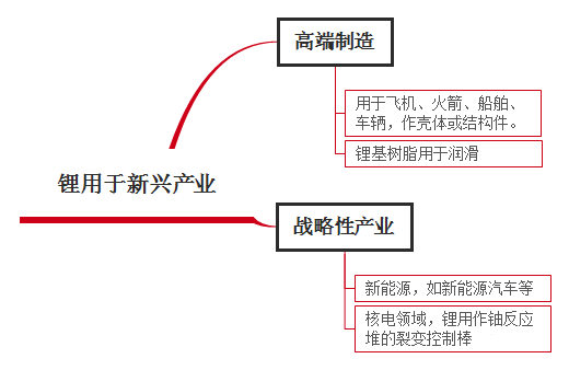 在戰(zhàn)略性新興產(chǎn)業(yè)領(lǐng)域,鋰用于新能源,新能源汽車是當(dāng)前最普遍的用途;