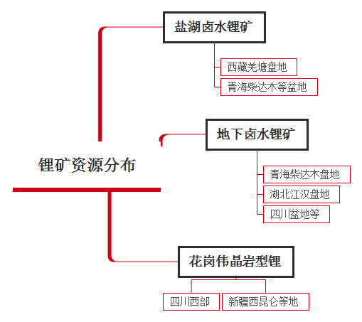鋰礦可分為鹵水型和硬巖型兩大類,鹵水型鋰礦包括鹽湖鹵水型鋰礦和地下鹵水型鋰礦,硬巖型鋰礦包括花崗偉晶巖型鋰礦和花崗巖型鋰礦。