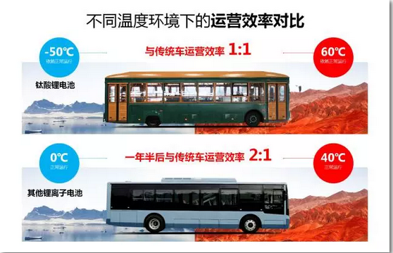 那么,銀隆鈦酸鋰電池耐寬溫的特點,到底優(yōu)勢有多大呢?舉例說明,東北的兩大省會城市長春和哈爾濱,幾年前上線的磷酸鐵鋰純電動公交都已經(jīng)全部停運,其原因就在于電池不耐寒,冬天時難以正常運行。由此可以預(yù)見鈦酸鋰電池在寒冷地區(qū)的競爭優(yōu)勢。
