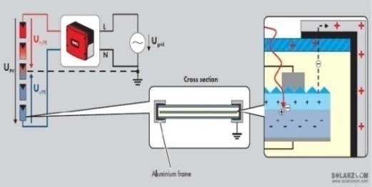 1)P型硅電池組件正極接地,或N型硅電池組件負(fù)極接地。