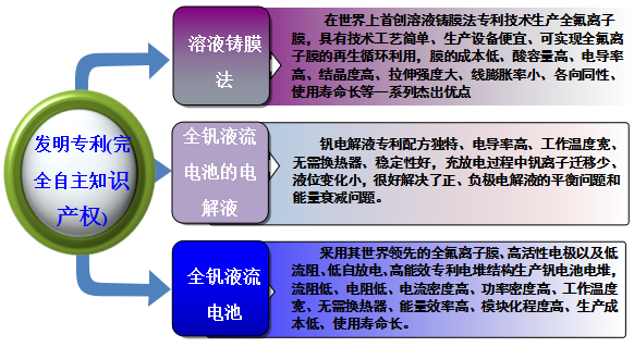 近年來公司圍繞模塊化、易擴(kuò)容、長壽命全釩液流電池儲能系統(tǒng)重點(diǎn)項(xiàng)目為創(chuàng)新發(fā)展戰(zhàn)略,持續(xù)投入研發(fā),擁有釩電池的完整自主知識產(chǎn)權(quán),掌握了高性能低成本的全氟磺酸離子膜、高活性高穩(wěn)定的電解液、高能效的電堆等核心制備技術(shù),在釩電池用全氟離子膜、電堆、電解液以及釩電池全系統(tǒng)模塊化等方面有著技術(shù)優(yōu)勢、產(chǎn)品優(yōu)勢,生產(chǎn)的釩電池具有功率密度高、系統(tǒng)能效高、工作溫度寬、循環(huán)壽命長、系統(tǒng)模塊化程度高等優(yōu)點(diǎn);擁有先進(jìn)的儲能系統(tǒng)集成及智能控制技術(shù),構(gòu)建高效、安全、穩(wěn)定、可靠的大規(guī)模全釩液流儲能系統(tǒng)裝備。