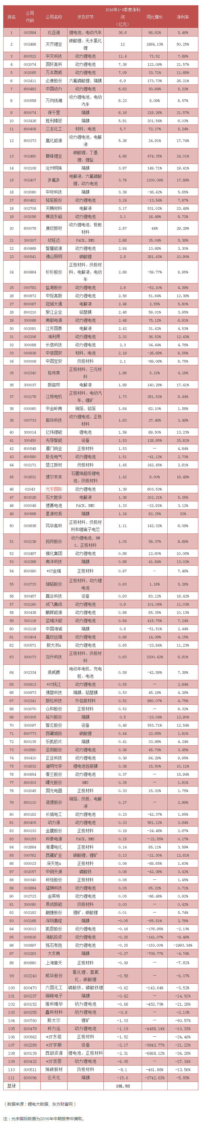 中國儲(chǔ)能網(wǎng)訊:據(jù)鋰電大數(shù)據(jù)統(tǒng)計(jì),截止2016年三季度,111家中國鋰電池相關(guān)上市公司凈利潤總和約為181.93億元。其中前10名龍頭公司凈利潤收入合計(jì)為100.38億元。
