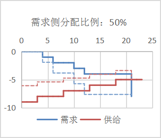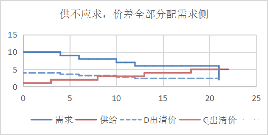 ③ 供大于求,按一定比例分配給供給側(cè)和需求側(cè)