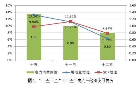 從歷史發(fā)展趨勢(shì)來(lái)看,2000年以來(lái)我國(guó)用電量增速總體呈現(xiàn)下降的趨勢(shì),由“十五”期間的13.24%降低到“十二五”期間的6.27%,“十三五”期間用電量增速還將進(jìn)一步下降,這也已是毋庸置疑的現(xiàn)實(shí)。同樣,我國(guó)經(jīng)濟(jì)發(fā)展也經(jīng)歷了從高速發(fā)展到新常態(tài)的轉(zhuǎn)變,“十二五”GDP增速明顯放緩,同時(shí)全社會(huì)用電量增速也明顯調(diào)檔;尤其是2014年以來(lái),隨著步入經(jīng)濟(jì)新常態(tài)、產(chǎn)業(yè)結(jié)構(gòu)調(diào)整、用電結(jié)構(gòu)的逐步優(yōu)化等因素,全社會(huì)用電量增速顯著下降。2000年以來(lái),電力消費(fèi)彈性這一指標(biāo)也保持下降趨勢(shì),這種下降趨勢(shì)將一直延續(xù)到“十三五”乃至今后很長(zhǎng)一段時(shí)間,這也是社會(huì)發(fā)展的一般規(guī)律。