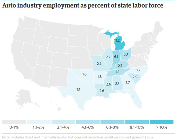 據(jù)勞工部統(tǒng)計,截止2016年12月,美國汽車及銷售維修等相關(guān)行業(yè)就業(yè)總?cè)藬?shù)高達(dá)385.3萬人,制造業(yè)占24.2%(93.4萬人),可以說,汽車業(yè)是美國制造最重要的行業(yè)之一,特朗普新政府要重振美國制造業(yè),增加美國銹帶地區(qū)的就業(yè),汽車行業(yè)是重中之重。