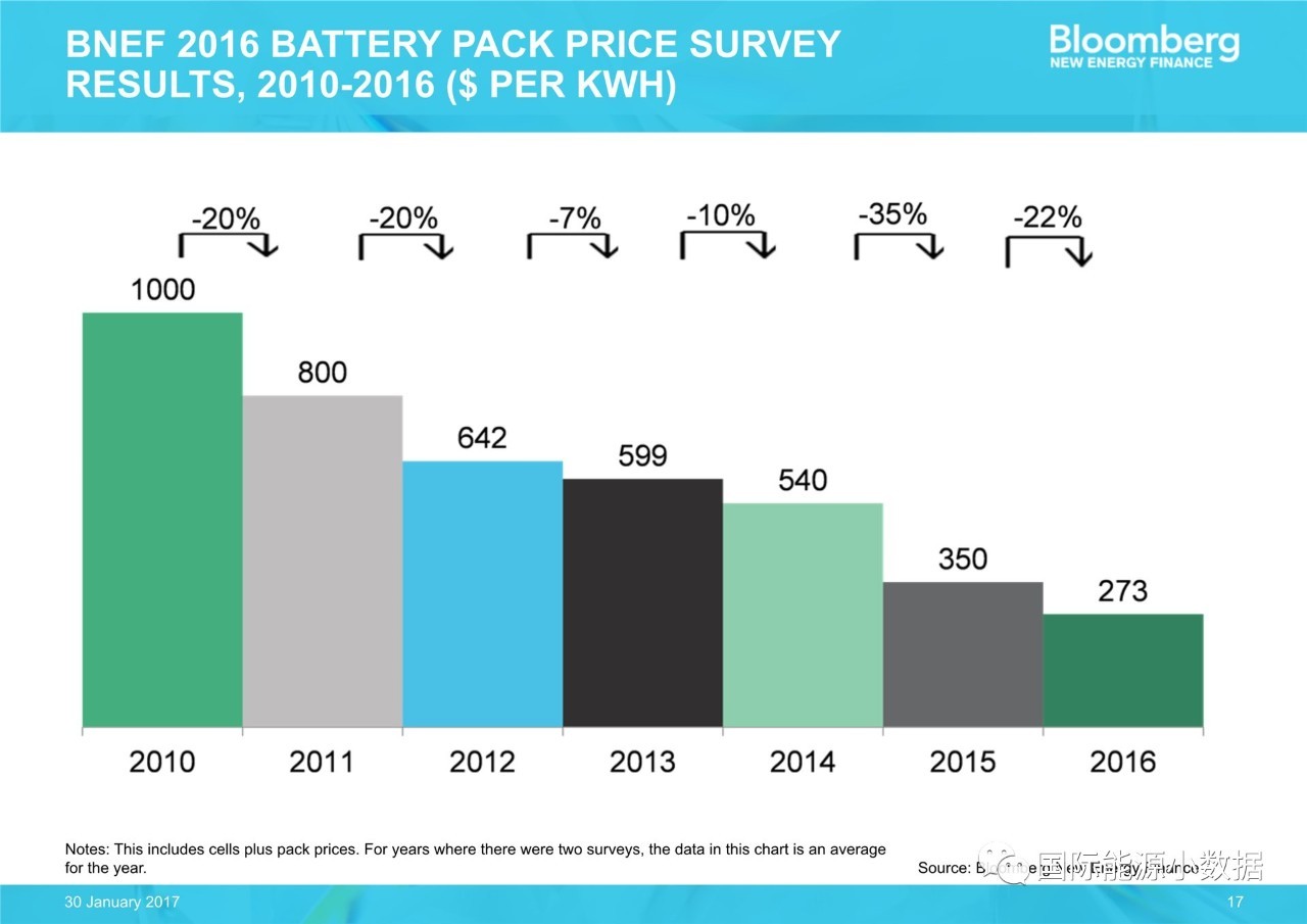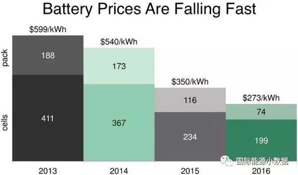 中國儲能網(wǎng)訊:根據(jù)彭博新能源財(cái)經(jīng)的調(diào)查統(tǒng)計(jì),鋰電池儲能系統(tǒng)價(jià)格自2010年以來持續(xù)下跌。2013年到2016年超過一半,從599美元/KWh(其中電池成本411美元/KWh)跌至2016年的273美元/KWh(其中電池成本199美元/KWh)。