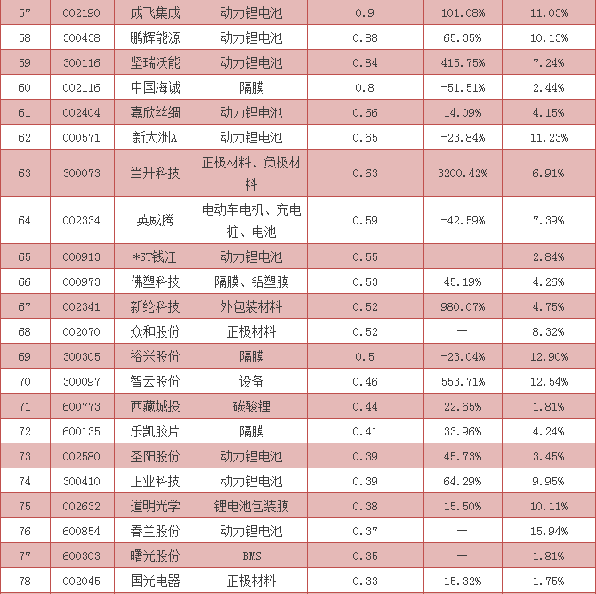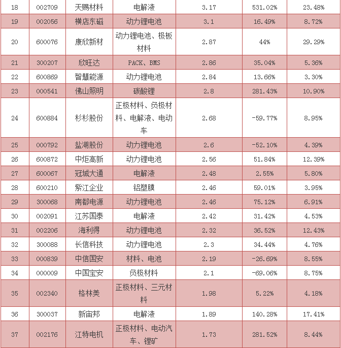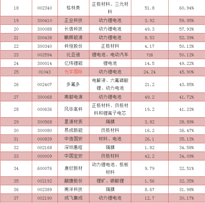 增長最快的鋰電上市公司排名