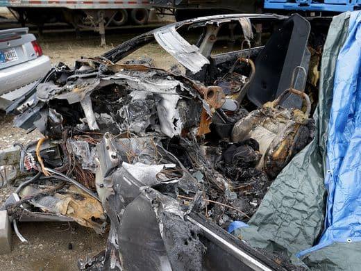 這款2015款特斯拉Model S搭載的是1200磅(約為540公斤)重的由幾千個小電池組成的鋰電池組。印第安納波利斯消防局局長Kevin Jones表示,救援工作受到了電池爆炸的阻礙:“一些小電池就像火箭一樣發(fā)射了出去,我們還從未遇到過這種情況。鋰電池被燒得非常熱,滅火需要大量的水?!?