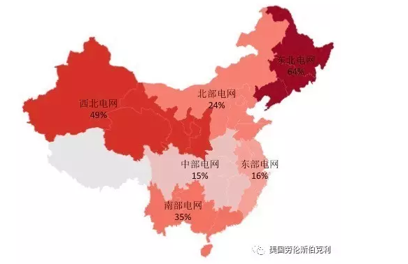 報告估算了中國區(qū)域電網(wǎng)層面的規(guī)劃備用容量,包括2014年的實際備用容量和2020年、2025的預測備用容量。結果顯示,截至2014年底,全國平均備用容量約為28%,幾乎是標準規(guī)劃備用容量的兩倍。與全國平均備用容量相比,更突出的是,主要區(qū)域電網(wǎng)區(qū)域的備用容量之間差異巨大:東北部地區(qū)的備用容量最高,超過60%,其次為西北部地區(qū)為49%,南部電網(wǎng)區(qū)域為35%,北部為24%,東部為16%,中部為15%。