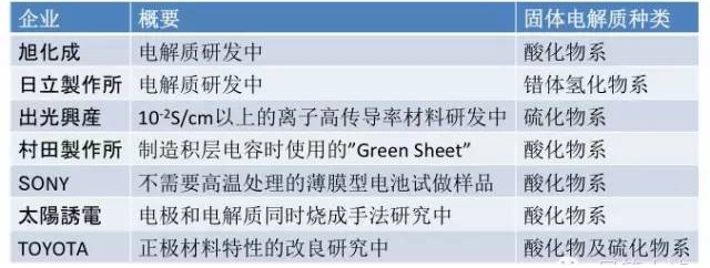 下面對日本企業(yè)的全固體電池研發(fā)狀況做個(gè)小結(jié):
