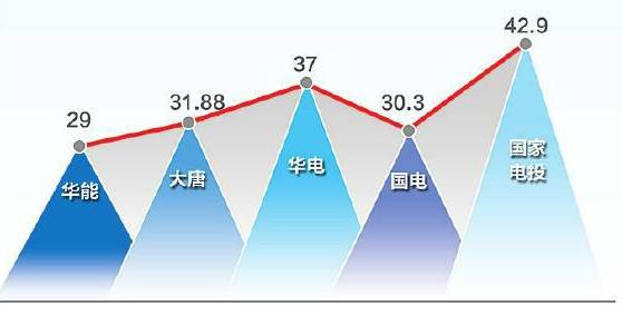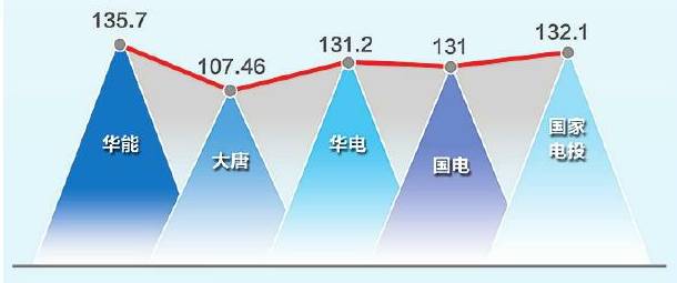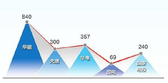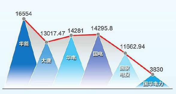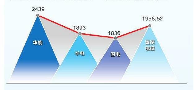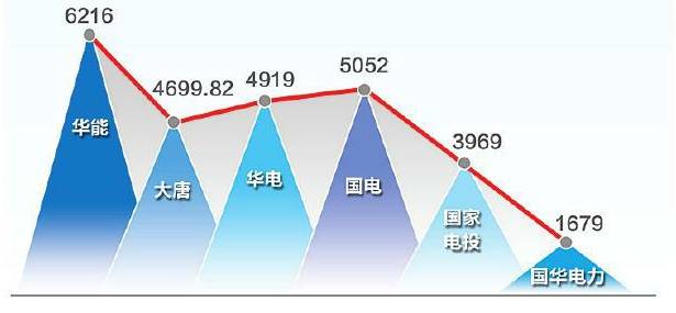排在第三、第四位的華電集團、國電集團差額僅為0.2億元。