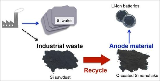 中國儲能網(wǎng)訊:在電子行業(yè),當(dāng)從一塊大晶圓上切下一小顆硅片的時候,往往會產(chǎn)生大量的碎屑。通常這些材料會被丟棄,但得益于日本東北大學(xué)和大阪大學(xué)當(dāng)前正在進(jìn)行的一項(xiàng)研究,這些硅碎屑將有望很快在高性能鋰離子電池領(lǐng)域得到運(yùn)用。科學(xué)家們從普通硅塵開始,洗去雜質(zhì)(比如通過切割過程中會用到冷卻劑),將其制成約 15nm 厚的粉末再裹上碳,最終做成電池的陽極。