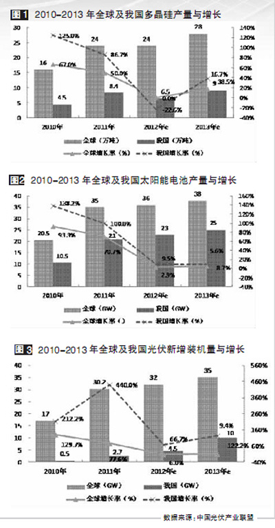 2012年,我國多晶硅產(chǎn)量達到6-7萬噸,同比下降10%以上,約占據(jù)全球總產(chǎn)量的27%,但多晶硅仍需進口,全年進口量達8萬噸以上,同比增長23%。在太陽能組件產(chǎn)量達到23GW,同比增長10%,占全球總產(chǎn)量的60%,出口量約與2011年持平,但出口額約130億美元,同比下降42%。全球前十大多晶硅、硅片、電池片和組件企業(yè)中,我國分別占據(jù)4席以上。光伏產(chǎn)業(yè)已成為我國為數(shù)不多的可參與國際競爭,并取得領(lǐng)先優(yōu)勢的產(chǎn)業(yè)之一。