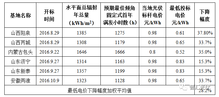 領(lǐng)跑者競爭更加激烈,最低的中標(biāo)電價(jià)下降幅度大,在15.3%~37.8%之間;