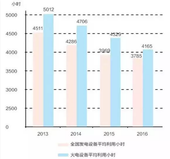 2016年的煤電產(chǎn)能過剩情況持續(xù)惡化。持續(xù)增長的煤電產(chǎn)能和持續(xù)降低的煤電電力需求導(dǎo)致全國煤電利用小時數(shù)不斷下降。根據(jù)據(jù)中電聯(lián)統(tǒng)計數(shù)據(jù),火電設(shè)備平均利用小時數(shù)從2015年的4329小時下降至4165小時,創(chuàng)半個世紀以來的最低水平。而這正是由于近幾年煤電新建項目大量投產(chǎn)。