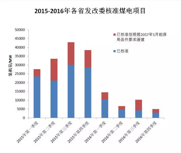 根據(jù)大嘴君的統(tǒng)計,全國煤電項目的核準速度由2015年平均每周核準3GW下降至2016年下半年每月僅核準1GW。