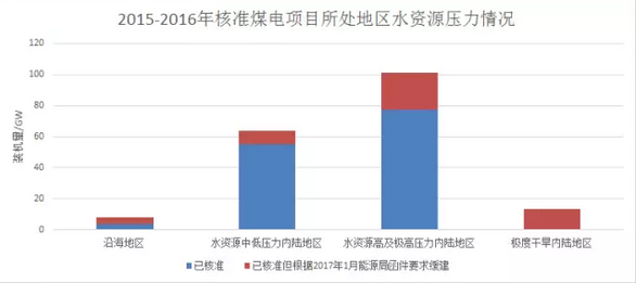 令人擔心的問題是,近幾年的政策將新增煤電產(chǎn)能集中分布在了水資源最為匱乏的地區(qū):2016年核準的煤電項目(11GW)中一半位于水資源高壓地區(qū),其中只有4GW被叫停。2015-2016年,在水資源高壓地區(qū)有77GW煤電項目獲得核準或開工建設(shè),而僅24GW被叫停。