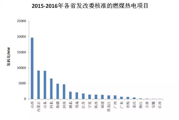 2016年仍有大量熱電聯(lián)產(chǎn)項目獲得核準,包括工業(yè)園區(qū)采暖供熱和居民區(qū)采暖熱電項目。根據(jù)大嘴君的統(tǒng)計,2016年全國有25GW熱電聯(lián)產(chǎn)項目通過了環(huán)評審批,其中14GW位于山東省。這不得不使我們提出疑問:熱電聯(lián)產(chǎn)項目不僅可以熱電聯(lián)產(chǎn),也可以僅用作發(fā)電。繼續(xù)批準熱電聯(lián)產(chǎn)項目是否會成為煤電項目獲批的借口?