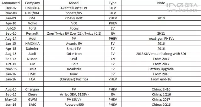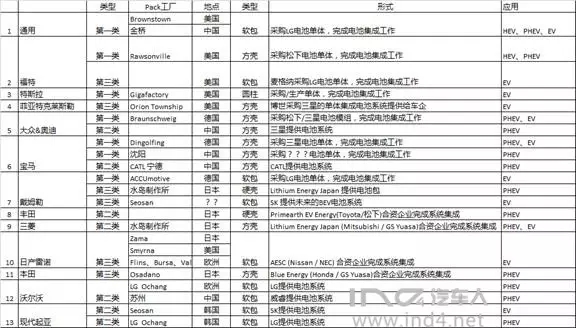 LG:以軟包電池為核心,如表1所示,從早期的HEV開始韓系的開始,擴(kuò)展到美國(guó)車企然后進(jìn)入歐洲車企。從整個(gè)來(lái)看,是提出了自己的一套模組和電池系統(tǒng)的方案,也單獨(dú)提供電芯。